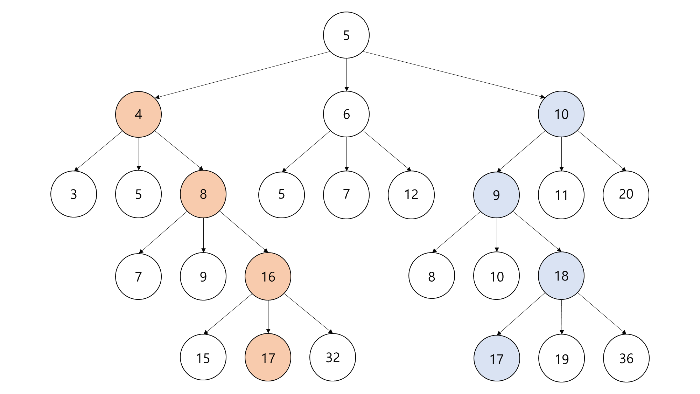 ์์ ๋ค๋ฃฌ 1697 ์จ๋ฐ๊ผญ์ง ๋ฌธ์ ์์ ์กฐ๊ฑด์ด ์ถ๊ฐ๋ ๋ฌธ์ ์ด๋ค. ์๋น์ด์ ์์น๊ฐ 5, ๋์์ ์์น๊ฐ 17์ผ ๋ BFS๋ฅผ ํตํด ํ์ํด๋ณด๋ฉด ์์ ๊ทธ๋ฆผ๊ณผ ๊ฐ์ด ๊ฐ์ฅ ๋น ๋ฅธ ์๊ฐ์ธ 4์ด์ ์ฐพ์ ์ ์๋ ๋ฐฉ๋ฒ์ 2๊ฐ์ง ๋ผ๋ ๊ฒ์ ์ ์ ์๋ค.