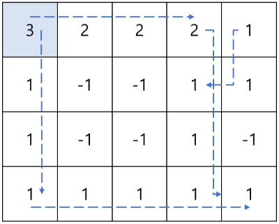 (0, 0)์์ ์ถ๋ฐํ์ฌ, (m - 1, n - 1)์ ๋์ฐฉํ๋ ๊ฒฝ์ฐ์ ์๋ฅผ ๊ตฌํ๋ ๋ฌธ์ ์ด๋ค. ๋ฌธ์ ์ ์กฐ๊ฑด์ ๋ ๋ฎ์ ์ง์ ์ผ๋ก๋ง ์ด๋ํ ์ ์์ผ๋ฉฐ, ๊ฐ๋ฅํ ๊ฒฝ์ฐ์ ์๋ฅผ ๋ชจ๋ ๊ตฌํ์ฌ์ผ ํ๋ค. ์ด ๋ฌธ์ ๋ฅผ ํ๊ธฐ ์ํด ๋จ์ํ BFS, DFS๋ฅผ ์ฌ์ฉํ๋ฉด ๊ฐ ๊ฒฝ๋ก๋ฅผ ํ์ํ๊ธฐ ์ํด ์ค๋ณต์ผ๋ก ํ์ํ ๊ฐ๋ฅ์ฑ์ด ํฌ๋ค.