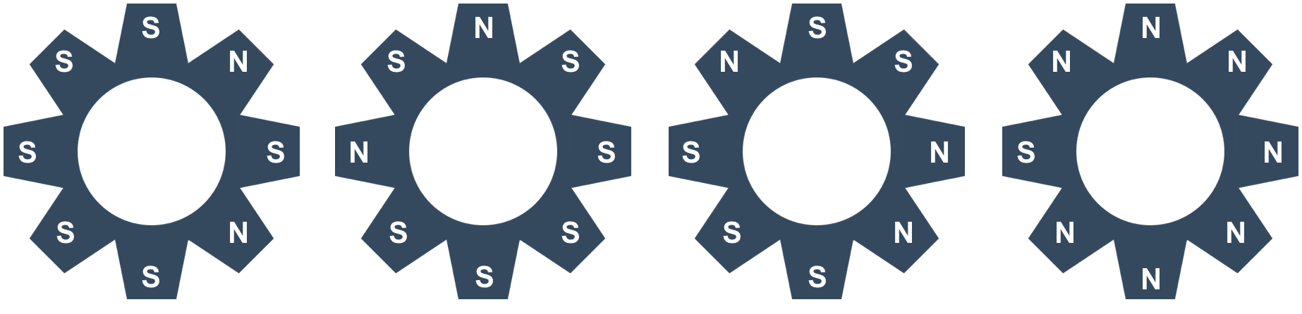 λ¬Έμ μλ 4κ°μ ν±λλ°ν΄μ λν μνκ° Nκ·ΉμΈ κ²½μ° 0, Sκ·ΉμΈ κ²½μ° 1λ‘ μ£Όμ΄μ§λ€. νλμ ν±λλ°ν΄λ₯Ό νμ ν λ, μκ³λ°©ν₯ λλ λ°μκ³ λ°©ν₯μΌλ‘ νμ ν μ μκ³ νμ νκ³ μ νλ ν±λλ°ν΄μ μΈμ ν ν±λλ°ν΄λ κ·Ήμ΄ λ€λ₯Έ κ²½μ° μν₯μ λ°κ² λλ€. μ΄λ, νμ ν ν±λλ°ν΄μλ λ°λ λ°ν₯μΌλ‘ νμ νλ νΉμ§μ κ°μ§κ³ μλ€. μ΄λ₯Ό κ³ λ €νμ¬ λ‘μ§μ ꡬννλ©΄ μ½κ² ν΄κ²°ν μ μλ λ¬Έμ μ΄λ€.