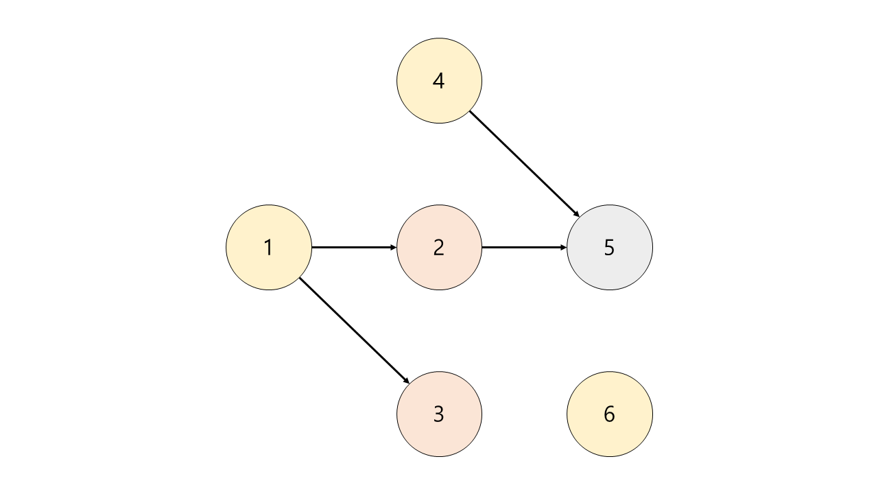 - ์์ ์ ๋ ฌ์ ์ด์ฉํ๋ฉด ํ์ ์์๋ 1, 4, 6, 2, 3, 5์ด๋ค.
