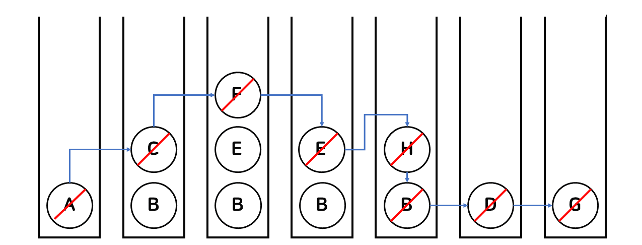- A๋ฅผ popํ๊ณ A์ ์์๋ ธ๋์ธ B C๋ฅผ ์์๋๋ก stack์ push ํ๋ค.